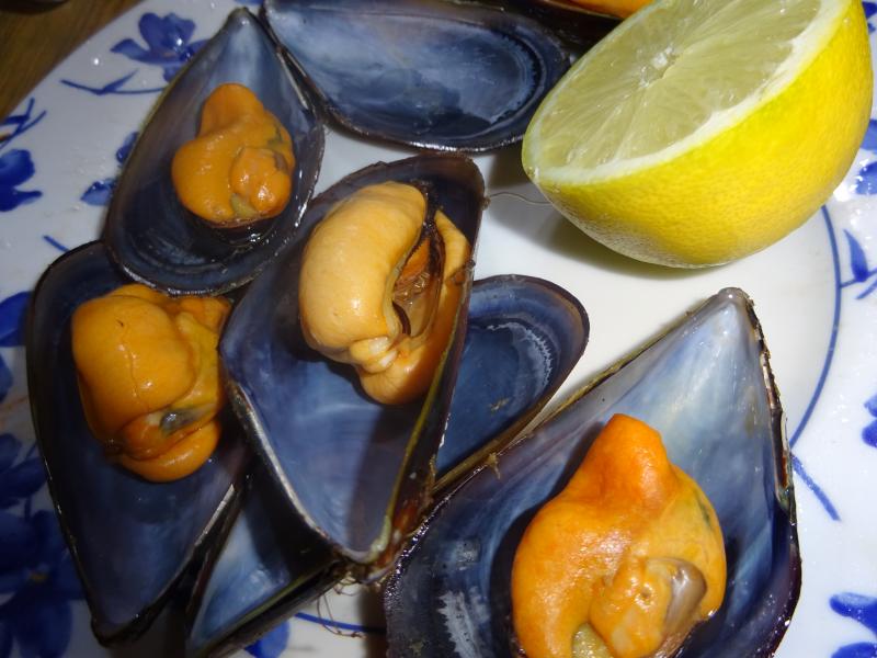 Hoy mejillones de roca al vapor del Tio Pepe con limon natural de mi arbolito limonero.