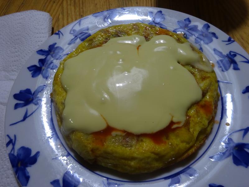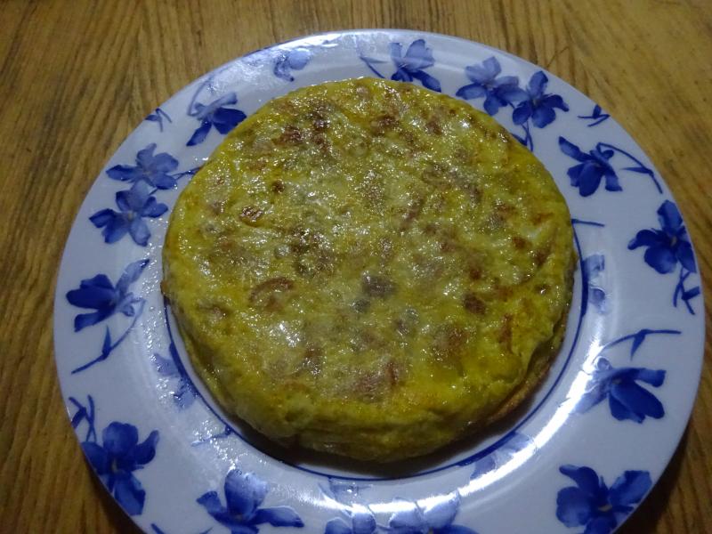 Para cenar tortilla de patata con cebolla y pimiento verde al microondas, es la 1ª vez que lo hago y me ha quedado estupenda.