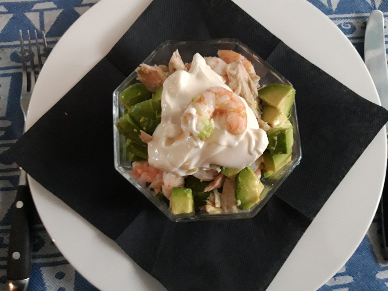 Luego una tortilla cobarde a las finas hierbas y de postre flan casero.