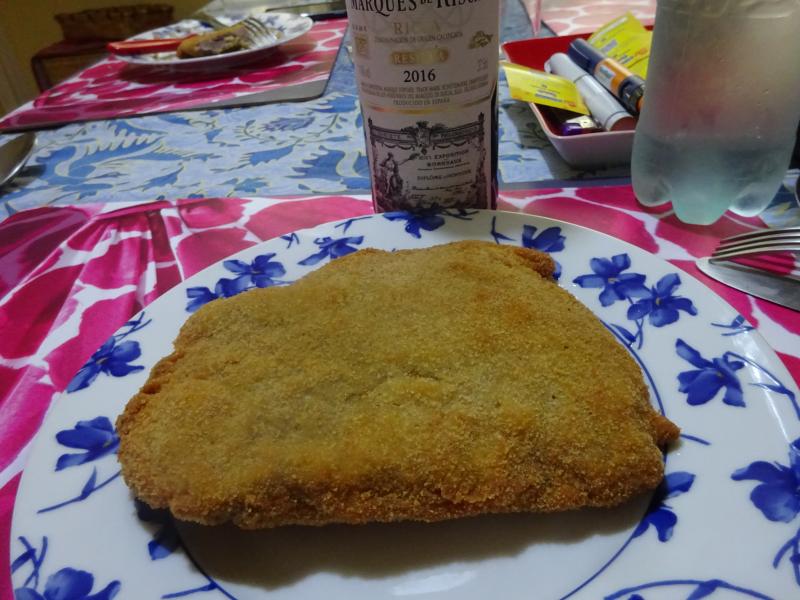 Para comer, Cordon Bleu de rabadilla de vaca tudanca cortada a cuchillo muy fina con lonchita de queso Cheddar y otra de pata negra, se pasa por huevo y pan rallado 2 veces y se frie en AOVEX abundante, estaba delicioso.