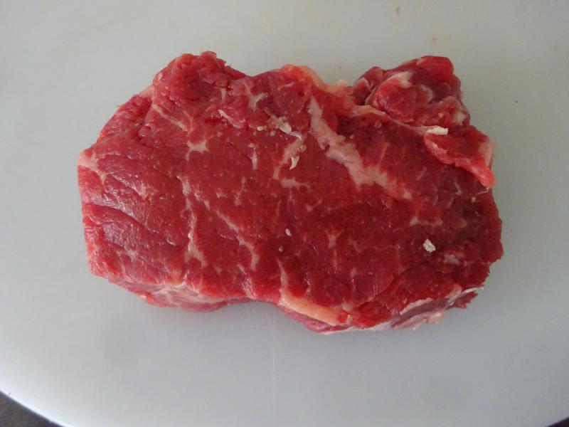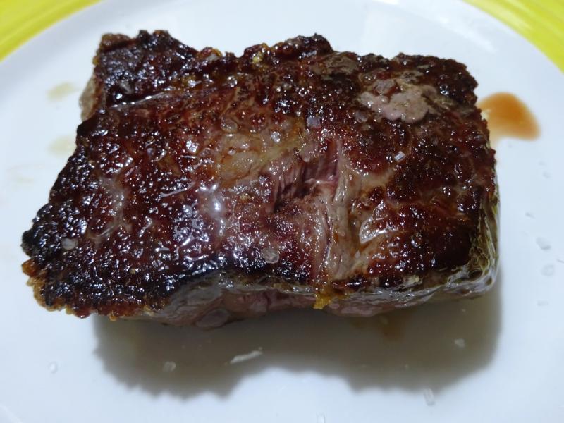 Solomillo de ganado mayor a la plancha, tostadito por fuera y crudo por dentro, crudo pero no frío.