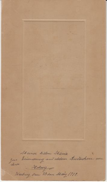 Segunda foto y dedicatoria ¿ Oficial de Ejercito ? y escrito en su parte lateral posterior.