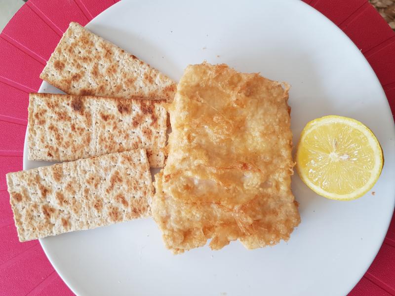 Merluza rebozada con huevo y harina.