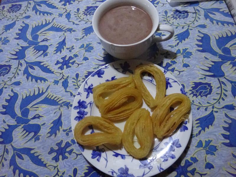 Para desayunar chocolate con churros, de comida puding de cabracho (se puede hacer con merluza congelada y queda de lo mas aparente y rico) y para cenar pizza napolitana a los 4 quesos.