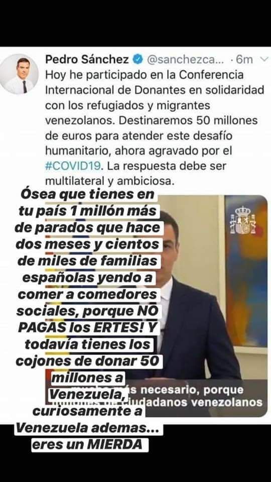 Pues te han leído el pensamiento y a eso vamos, de momento vamos a ayudarlos, no sea que mañana los necesitemos nosotros (no será a este paso muy descabellado), pero lo grave es que mientras ayer o anteayer en el Estadio del Mestalla se hacia reparto de comida social a familias necesitadas, nuestro Presidente tiene a bien regalar 50 MILLONES de ná a Venezuela, lo que creía y daba por Fake no lo es.