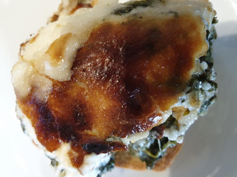 Espinacas gratinadas, bacalao a la vizcaína