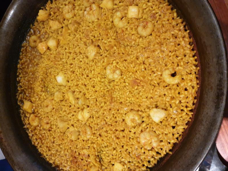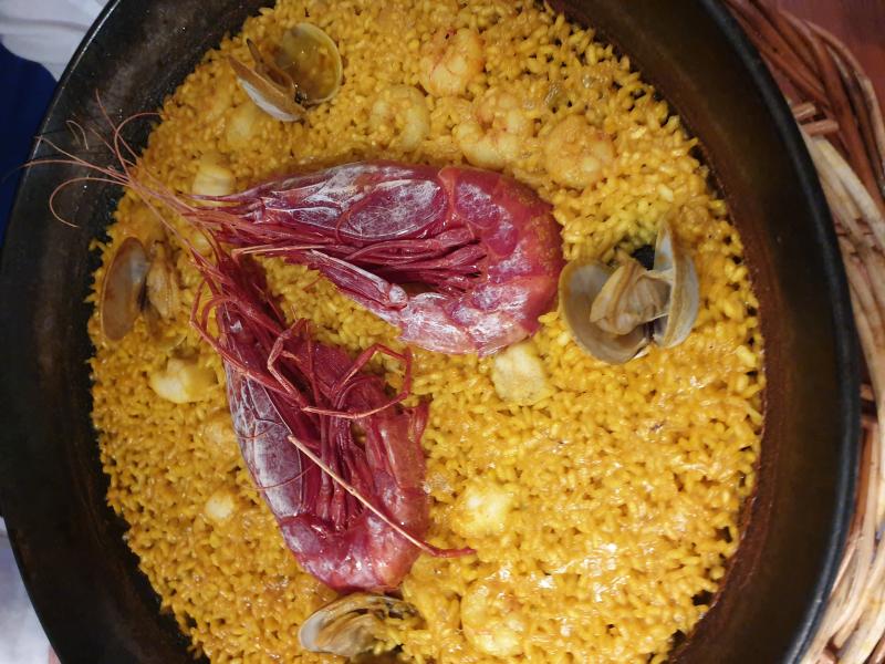 Arroz limpio y arroz con carabineros para dos y dos, del rest. el Barril.