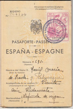 Pasaporte expedido el 19 de Agosto de 1940 en San Sebastián.