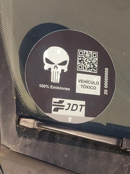 Como mi coche diesel de más de 20 años (que funciona perfectamente) no tenía etiqueta ambiental le he comprado y puesto una , espero que no me multen por mi sentido del humor.