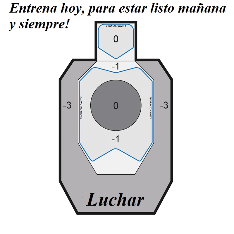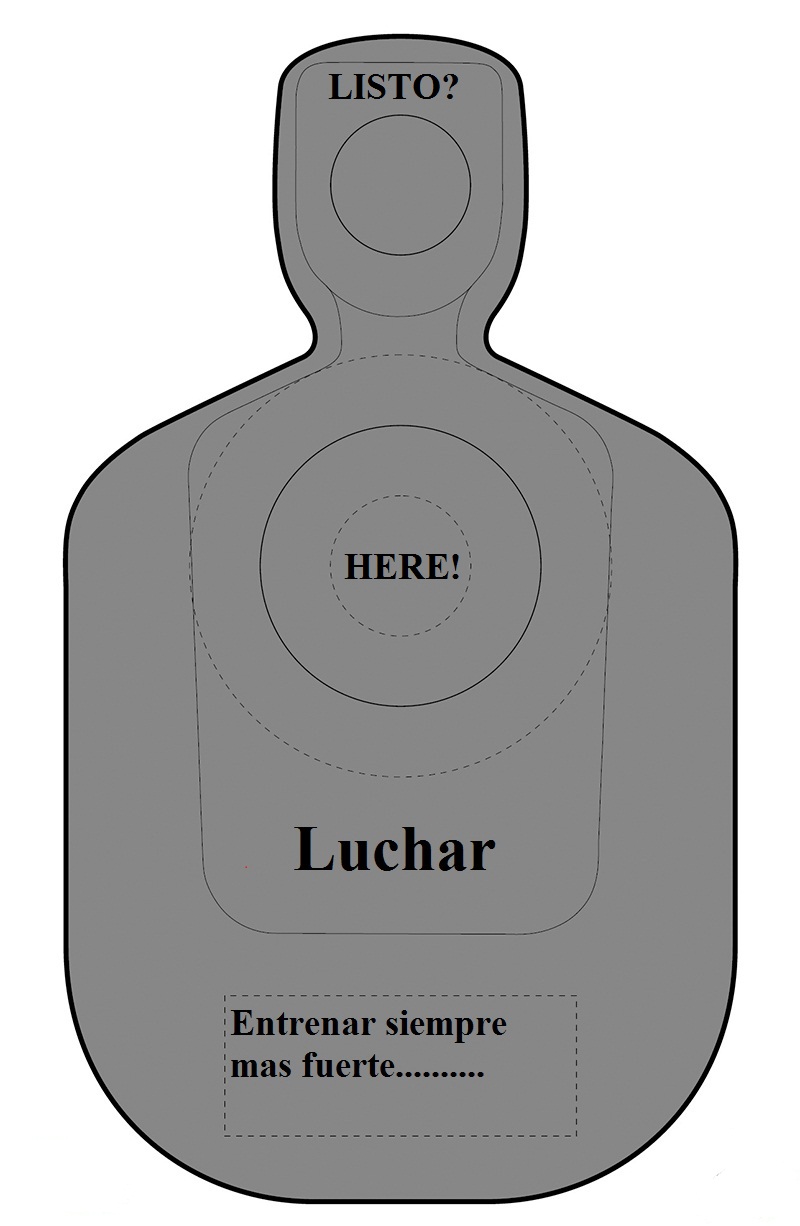 El blanco es un círculo de papel de 8 pulgadas de diámetro como el que venimos utilizando en otros ejercicios tipo, blancos IDPA que ya traen dicho círculo marcado y denominado como zona 0.