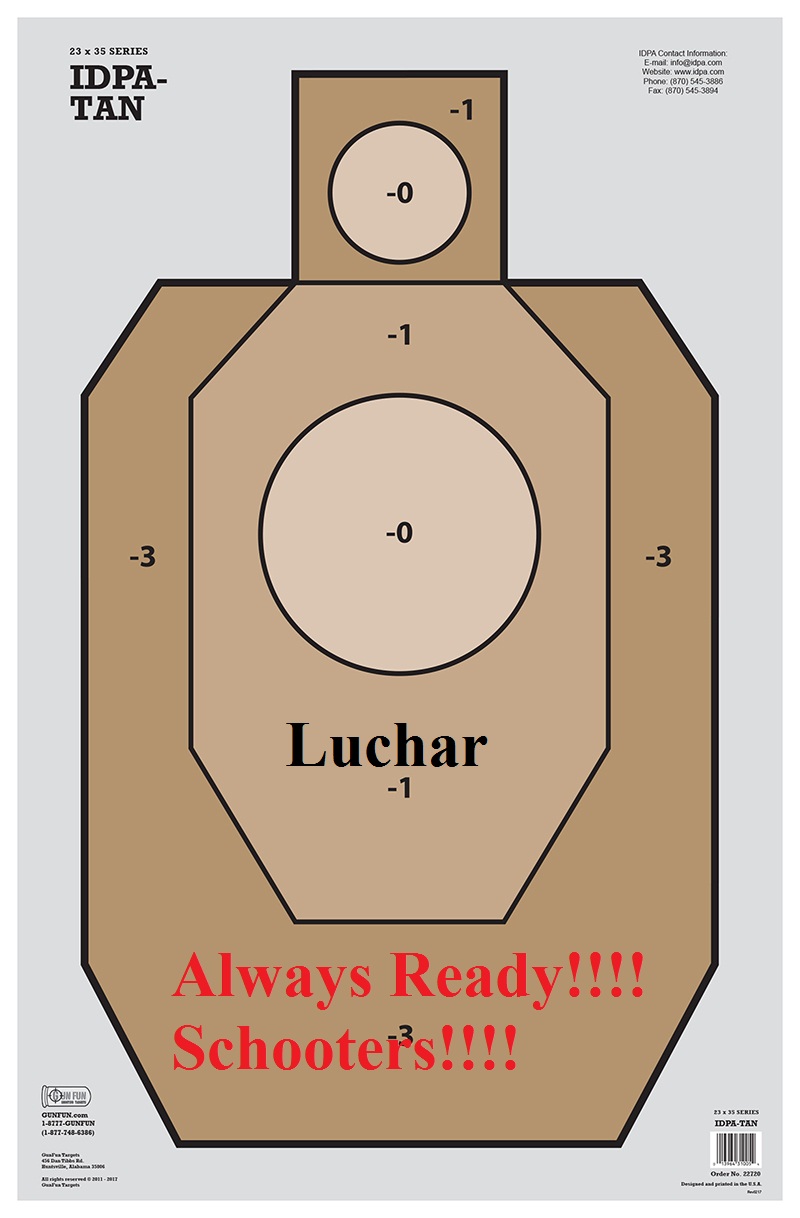 Primera fase: A 20 yardas, desenfundar y disparar 10 veces a la Zona A( o Zona 0) del blanco en un tiempo máximo de 12 segundos.