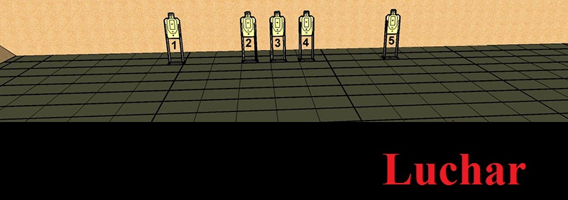 En resumen desplácese de izquierda a derecha disparando una vez por ambos laterales de cada parapeto, en los desplazamientos en campo abierto aumente el volumen de disparos, disparando 3 veces a las siluetas centrales, las mas cercanas.