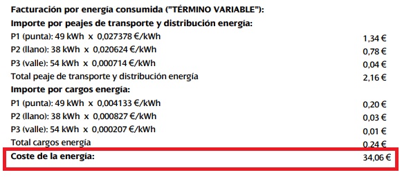 Te ponen un concepto al final del apartado "Facturación por energía consumida ("TÉRMINO VARIABLE") que se llama "Coste de la energía" y el importe que te meten ahi es lo que han calculado hora a hora, dia a dia según tu consumo y precio del mercado en ese momento. Ese importe no es la suma de lo que viene más arriba en la factura bajo los términos de hora punta y valle, que eso sí, es casi siempre lo mismo.