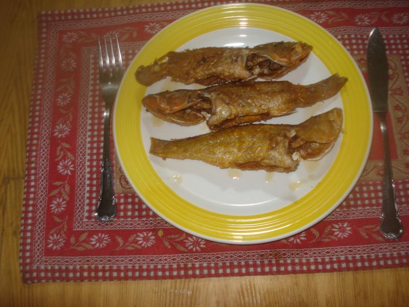 Cabritas de roca, pescado raro de ver en pescaderías comerciales, pescadas esta misma mañana y que me voy a papear fritas en AOVEX Carbonell, estarán deliciosas como siempre, es lo que tiene el pescado suprafresco.