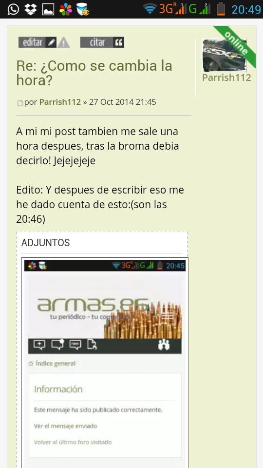 Parrish112 escribió:A mi mi post tambien me sale una hora despues, tras la broma debia decirlo! Jejejejeje