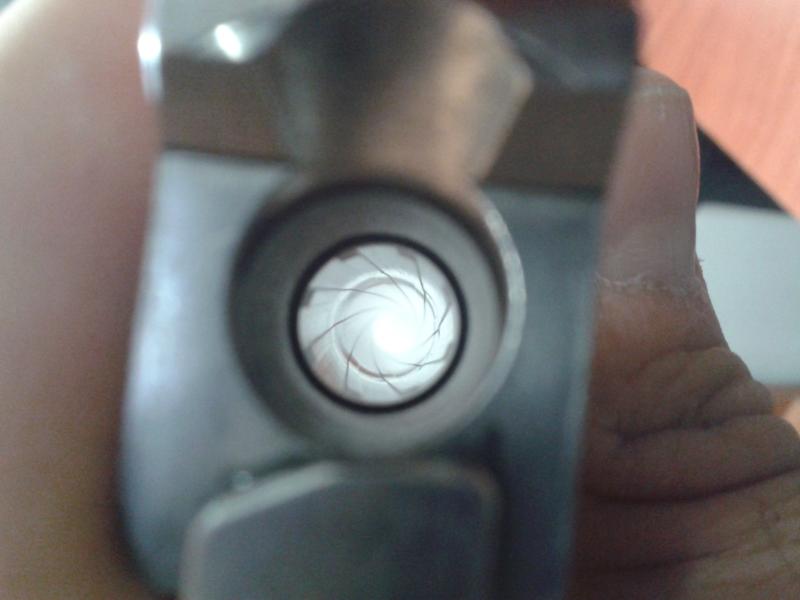 el cañón tiene lo que se ve en la foto, un anillo dilatado, fruto posiblemente de un disparo sin pólvora y otro posterior con carga..