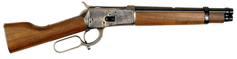 Ese tipo de carabinas recortadas se conocen como "Mare's leg", se hicieron populares por unas series de TV protagonizadas por Steve McQueen. En los USA están catalogadas como pistolas, no como rifles.