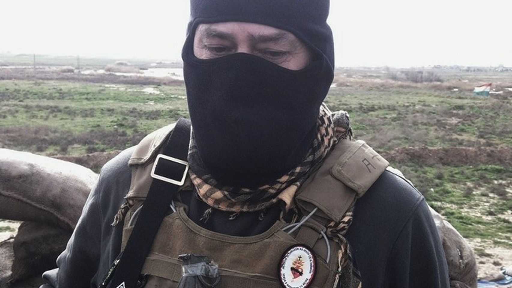 Hola este soldado Español mercenario,, lleva en el pecho un " detente" se trata del chaleco antibalas que llevaban muchos Españoles del banco de Franco durante la guerra, es decir una imagen de Cristo la Virgen o el corazón de Jesús,,, llamado " detente bala " no he puesto esto para cachondeo lo he puesto por que me llama la atención verlo en una guerra moderna.