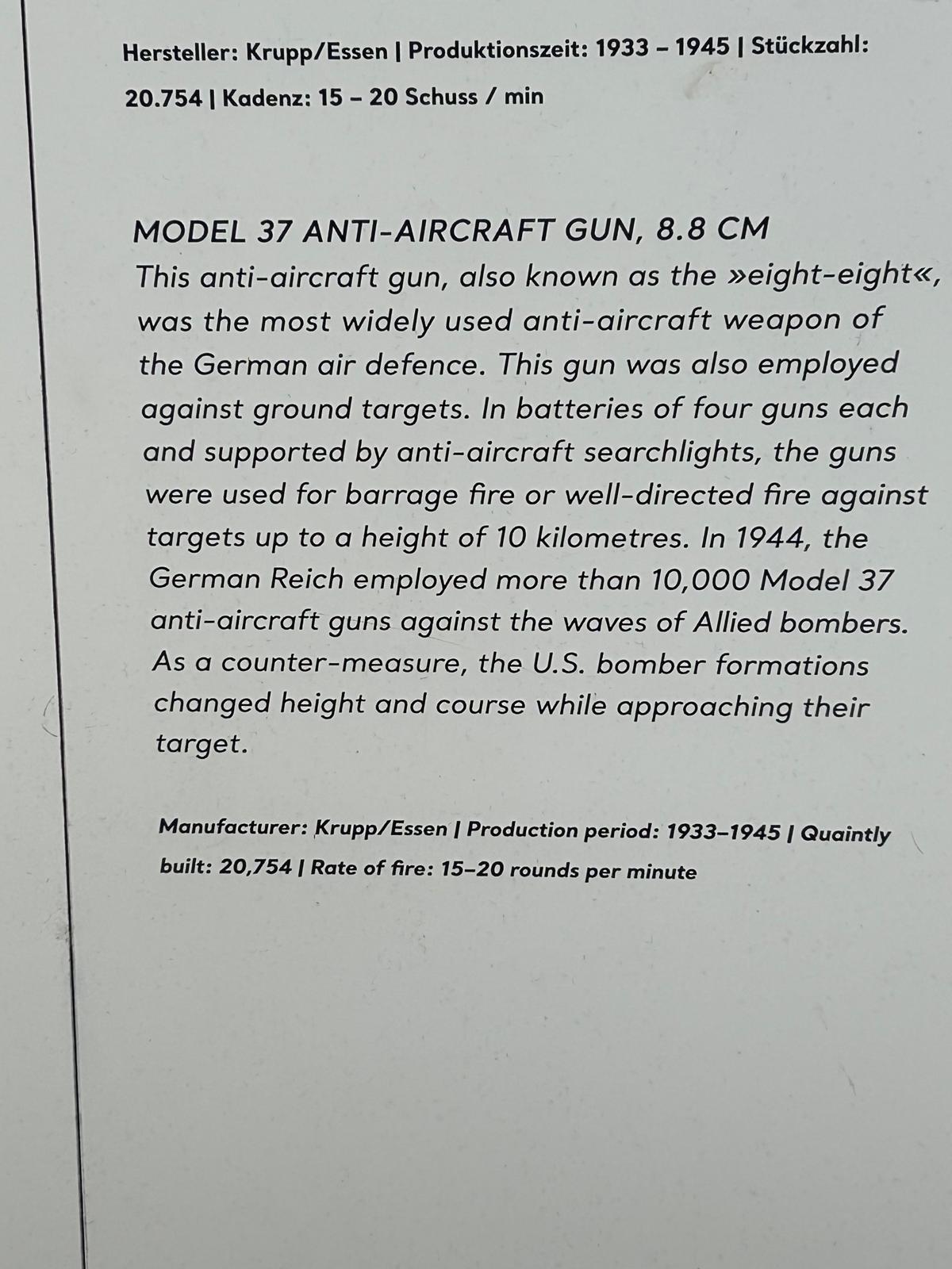 Yo no me refiero al cañón de alemán de 88 mm que probo por primera vez en la Batalla de Brunete. Sino al Comite de Evaluación de Armas de Guerra supuestamente creado por los americanos al terminar la SGM para evaluar todas las armas que intervinieron en dicho conflicto. Además el cañón Krupp de 88 mm tengo buena información porque en el mes de mayo estuve en Berlín y lo tenían en un Museo Militar. Subo fotos hechas por mi