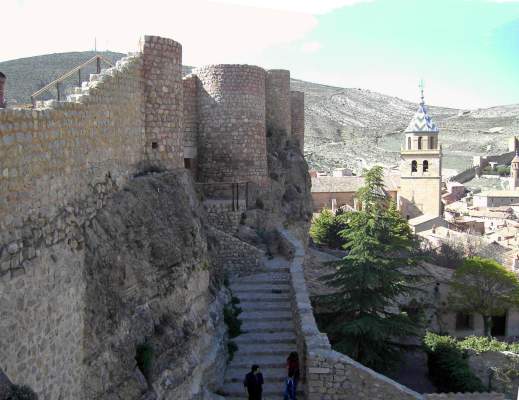 La residencia militar de los señores de Albarracín, primero árabes, luego cristianos, se asentaba sobre una roca. Hoy, las ruinas del castillo yacen oscurecidas frente a la espectacular cortina de murallas con sus torres prismáticas que remontan la montaña, y que proceden del siglo XIII.