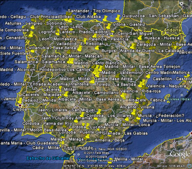 En este archivo adjunto podéis encontrar una rápida visualización de los principales campos de tiro existentes en España.