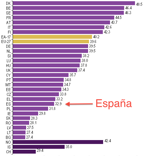 El problema no viene de que haya mucho gasto público, que no lo hay, sino de que se ingresa poco, y encima el esfuerzo fiscal recae sobre las capas medias y bajas de la población.