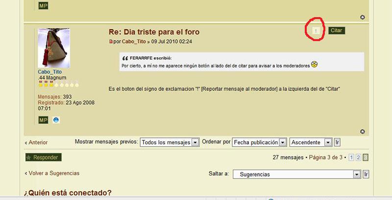 Gracias cabo, no sé porqué será pero hay días que no me aparece el signo de reportar y otros sí, será cosa del firefox supongo :roll: