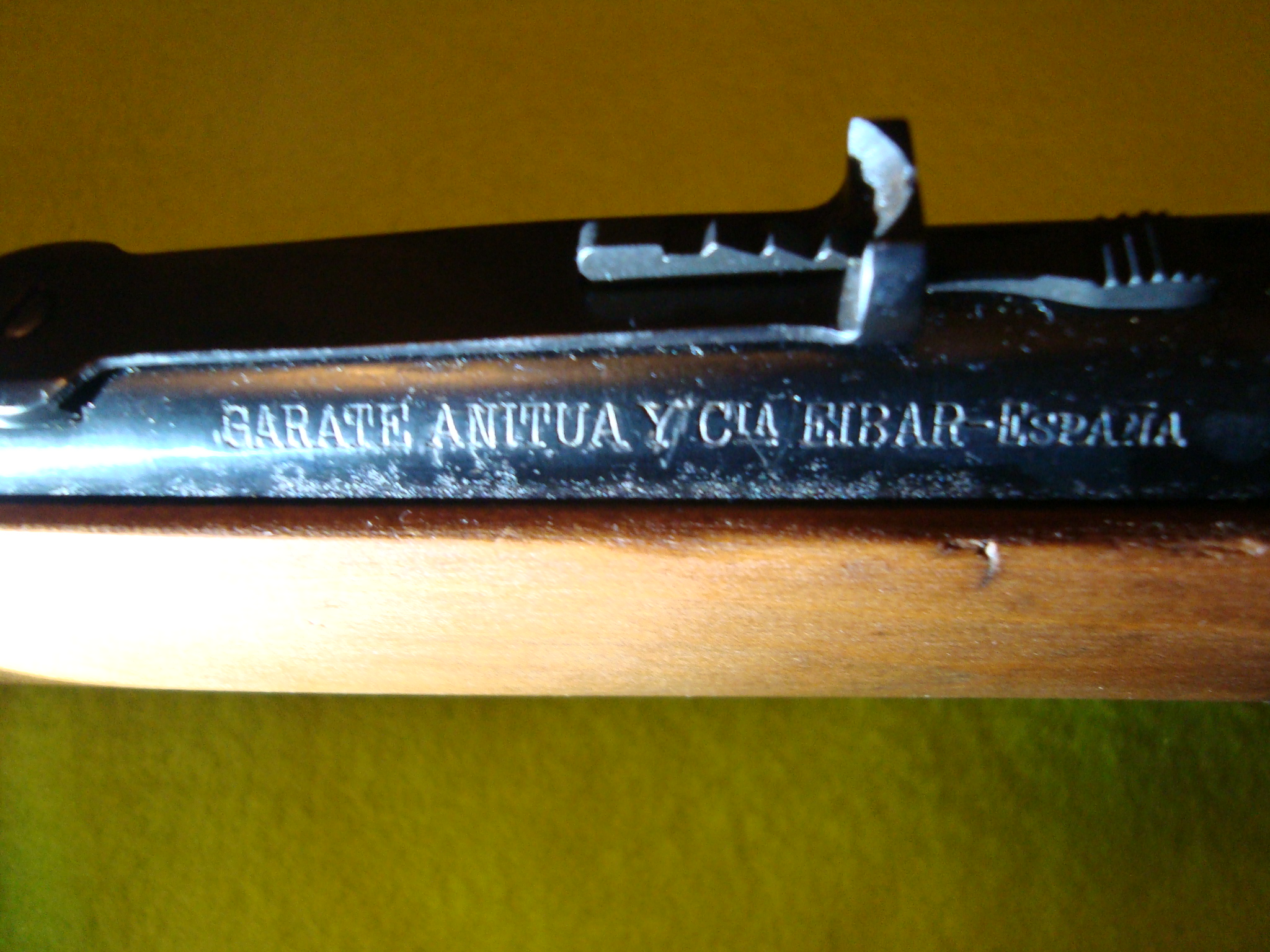 - En estos últimos el nombre del fabricante figura en el costado izquierdo del cañón, entre el alza y el guardamanos, porque al ser el alza de sierra más larga no cabe la leyenda en la parte superior.