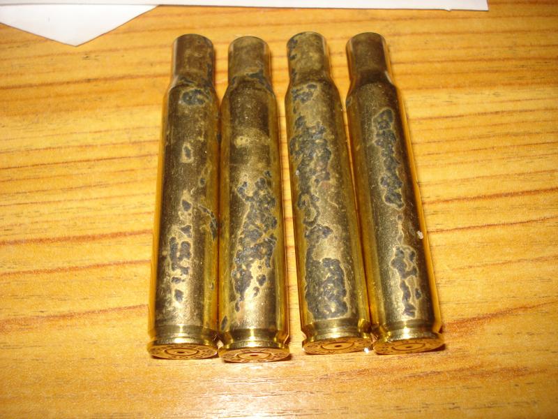 El aspecto tan guarro de las vainas es el resultado de haberlas dejado en el armero dentro de una cartuchera de CUERO, trampa mortal donde las haya por ser una mina de cardenillo, no hay más que ver las fotos.