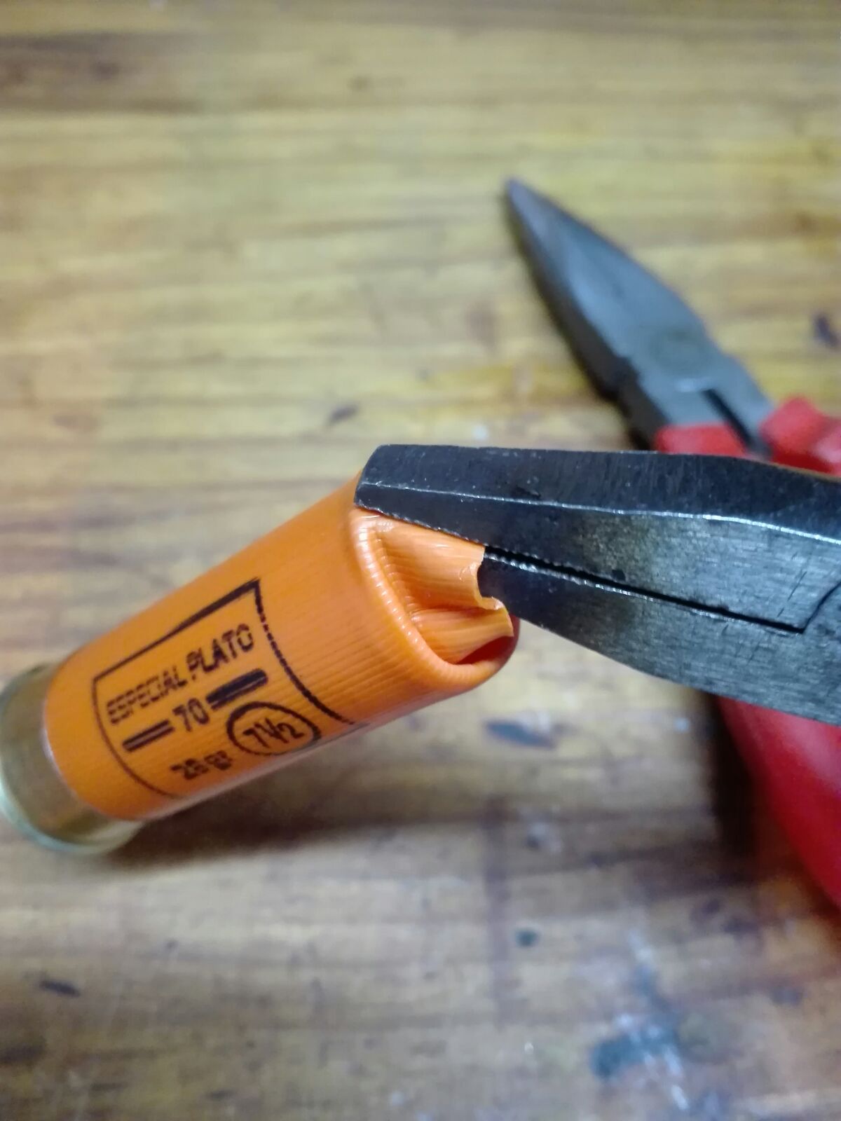 Con unos alicates ternino de abrir la estrella clavando la parte chata de alicate en el borde del cartucho.