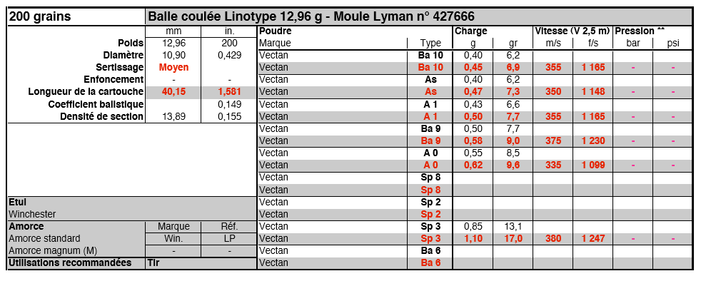 hola de nuevo , creo que en algun punto tenemos un cruce de tablas , las tablas de vectan que yo tengo con sp3 y 200 greims me dan 380 m/s maximo , las pruebas de velocidad que he hecho con cronografo en ningun momento me han llegado a los 400 m ( no apuro la cargas es verdad) y en el manual de recarga de lee ninguna polvora llega a los 400 m/s en este calibre en rifle y en revolver ninguna a 300 m/s