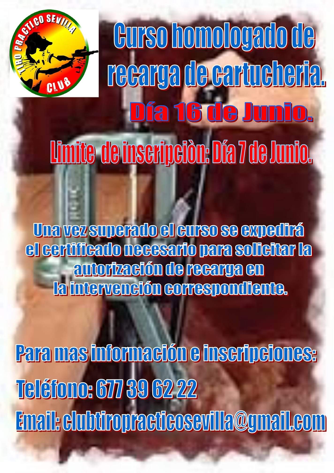 Próximos cursos de Recarga de Cartuchería Metálica Homólogados, uno de los trámites indispensables para obtener la habilitación para la Recarga de Cartuchería Metálica, los días 5 - 11 y 18 de mayo