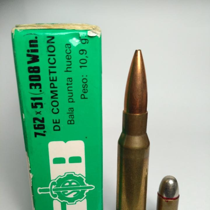 Respecto a las fotos, si mal no recuerdo S.B. sólo fabricó munición de caza con punta Silver Tip de Winchester y de competición con la Sierra Match King. Ninguna de las dos es la de la foto, más bien lo que parece es que se le ha cortado la punta para dejar el plomo a la vista, práctica muy común entre quien usaban esa munición para caza, lo cual modificaba totalmente la balística y su resultado para caza era aleatorio.