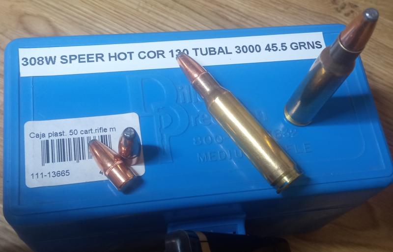 Hola, yo tengo algo que te puede servir. Investigando sobre cargas suaves para el 308, probé las Sierra SPT de 125 grain. Asi de memoria, creo que eran 36 grain de FIL343 para dar sobre los 750m/s, que demostró ser muy efectiva sobre ciervos y jabalíes a menos de 100m. Viendo su efectividad la empujé un poco más rápido...y luego un poco más. Ha sido un proyectil que me ha dado siempre un resultado en cuanto a precisión muy bueno, y aunque sea un diseño orientado a la caza mayor, no tengo duda que serviría perfectamente como proyectil varmint. También he probado la Sierra varminter en 135 grain, con muy buena precisión a velocidades moderadas (cargas reducidas) pero que no funciona para nada en caza mayor, así que la deseché. Por último, también he probado la misma que tú, la Speer 130 hor core FP y va muy, muy bien en cargas reducidas (efectivamente es una punta para el 30-30) pero nunca la he sacado a más de 500m/s.