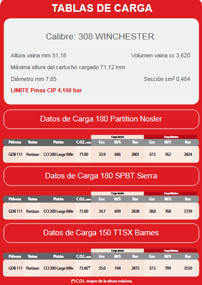 Quizás 185 es una punta bastante pesada para un 308, pero quería un tiro suave y pensé que con 40 gr de Fil iba bien y hombre 40 años no tiene, digo yo. :0