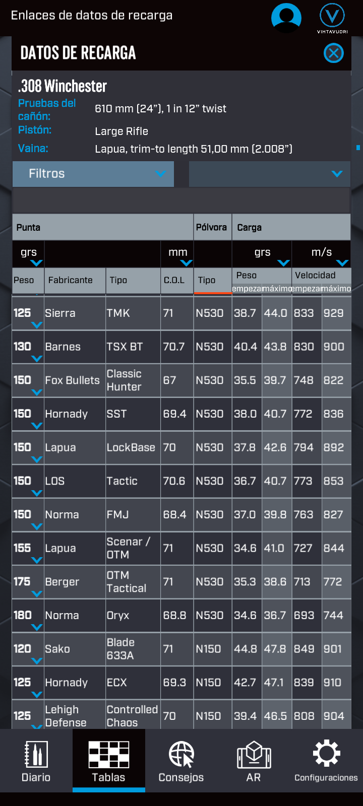 Hace un mes mas menos compre un bote de Vita N 530 , no era la que buscaba pero después de mirar tablas de de Vita y teniendo en cuenta que quería cargar hasta 150 GR En 308 win pensé que podía ir bien, hice unas simulaciones en quick load , empecé cargando 38,50 GR , otro lote de 39,00, y un par mas subiendo 0,5 gr por lote, y según los resultados , fui tranquilo no buscaba subir de 830mtr/s.