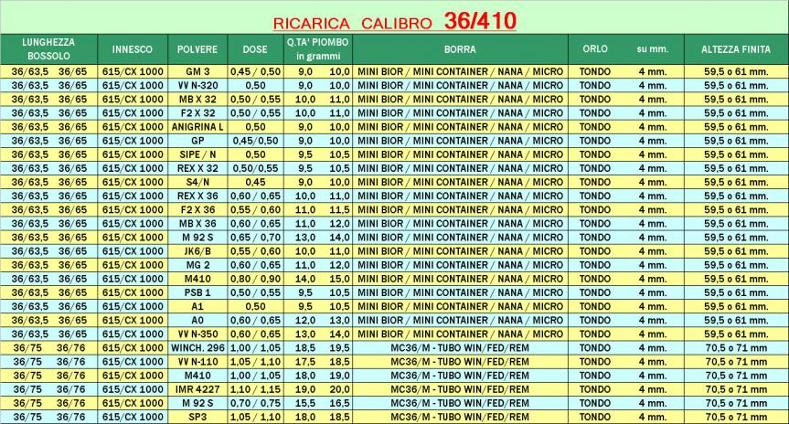 busca en google "dosi ricarica 410" encontraras muchísima ??? informacion. Básicamente para cargas de 17 a 19 gramos de plomo entre 1 y 1,1 gramos de Sp3, pero YO NO LO HE PROBADO.
