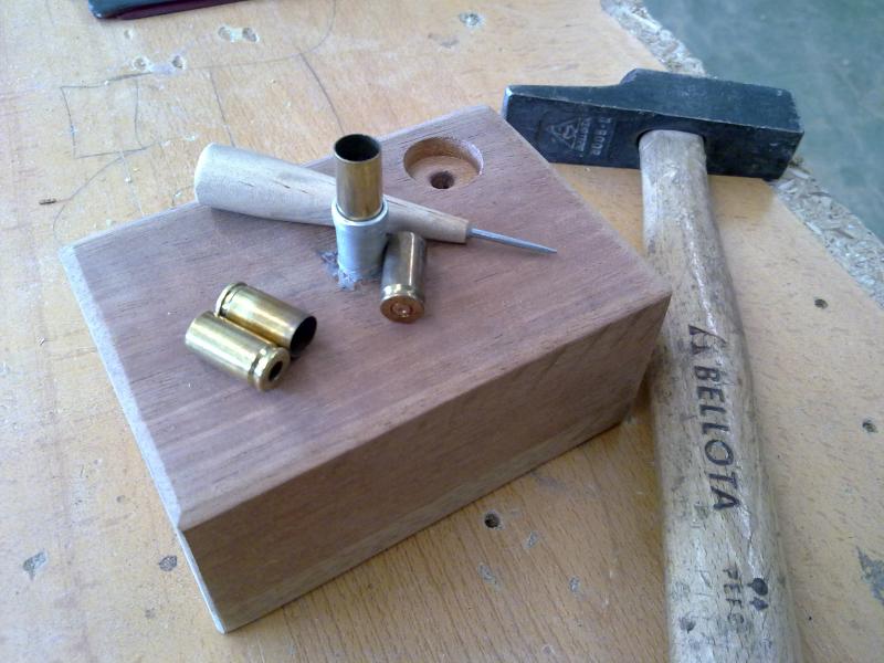 Muy buenas...estoy poco a poco considerando unirme al mundo de la recarga(Y lo primero decir que soy lo siguiente a nuevo en esto),y mientras pido la maquinaria,hago el curso...me he dedicado a quitar los pistones a las vainas con un pequeño artilugio que e hecho(todo decir que el mecanismo es uno mismo y que con un golpecillo sale perfectamente...)Haber que opinais,asi una vez quitado los pistones a la hora de limpiar las vainas se quedan "nikel"(en el dialecto malagueño "se quedan muy limpias).