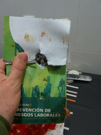 He de decir que me vi gratamente sorprendido por parte de la norma, pues no es tan blanda como me parecía, sino que es capaz de atravesar dos núcleos duros como son los libros y mantener la trayectoria sin desintegrarse. Al principio me costo encontrar los restos y pensaba que se había desintegrado, pero para mi sorpresa se mantuvo toda la envolvente.