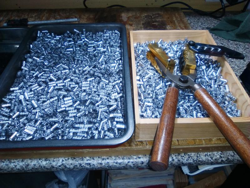 Como tu bien dices y al precio que estan las hn (+- 44€/500) con lo que hay en la foto ya esta el molde pagado puesto que la aleación ha salido gratis y en caso de tener gastos (plomo y utensilios para fundir y engrasar) saldrian las 1000 puntas a unos 17 euros, lo cual no esta nada mal, tiempo invertido a parte pero eso por ahora no nos cuesta ni un euro.
