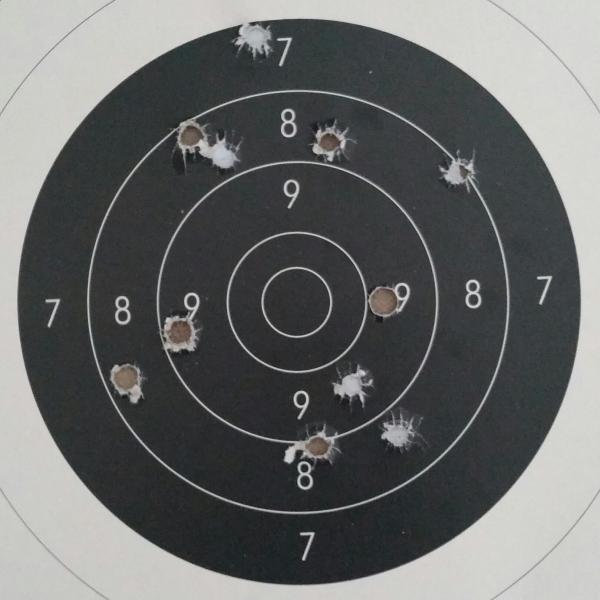 Un poco mejor que eso lo hace mi paralela a 50m con municion recargada, a 25m no me salgo del 9.