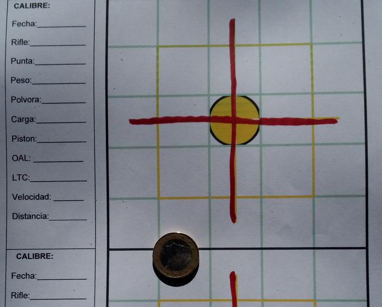 Al final le he bajado la carga a 51g que es la segunda mejor agrupación que hice en su día y le he sacado un poco más la punta y los pistones ya no tienen cráter y la agrupación ha mejorado bastante