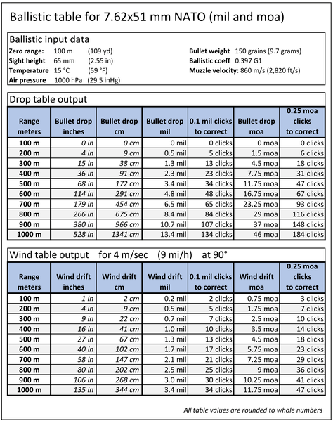 Aqui une photo que tengo en mis archivos de balistica. Tambien tengo que decir que si quieres tirar a 700m con una punta de 150 pues espera a que no haiga viento! Tienes que decirte que hay que ser "clasico" en ciertas cosas. Al 308 le van las 168 o 175gr, sobre todo que creo que hoy en dia el canon es de 1/12. Las 150 guardalas para la caza que no tiras mas lejos que 2 o 300m. Ha se me olvidaba, como no tengas une buena mira telescopique que tenga elevacion, vas a tener que ponerle una base inclinada para llegar a esa distancia.