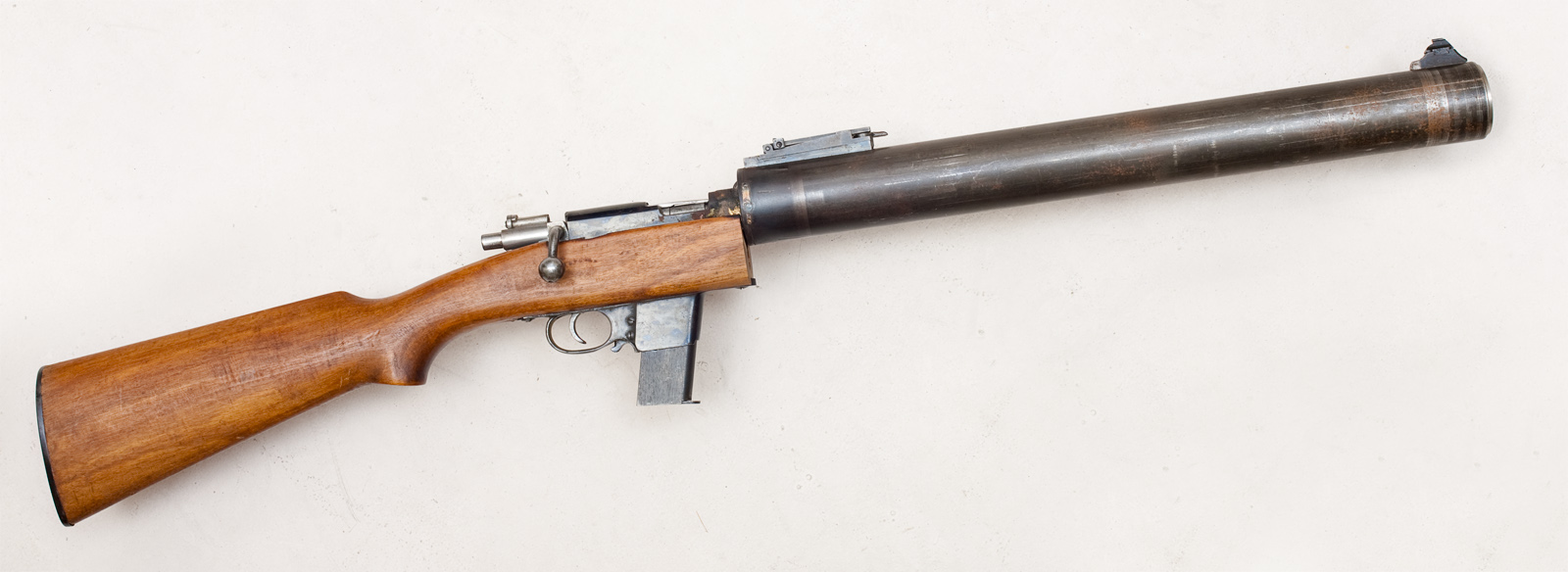 CARABINA DE REPETICIÓN “DESTROYER”, PARA CARTUCHOS DE 9 mm BERGMANN. MARCA “DESTROYER - TRADE MARK”, Nº15782. LONG. DEL CAÑÓN