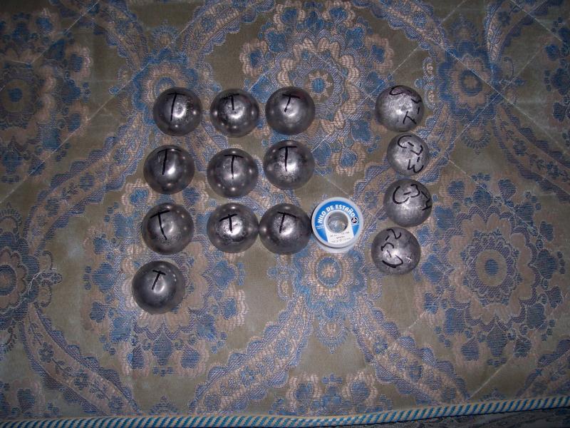 1ª Todos los contrapesos eran de plomo, bien habiendolos separado de los de zinc o bien por que eran antiguos y entonces no existian estos ultimos. En este caso todo perfecto ya que la aleación que tienes es buena para fundir tus puntas, para mi gusto yo la mezclo a partes iguales con plomo de tuberias para los calibres que tiramos aqui (32, 38 y 9mm) y asi la aprovecho mejor.