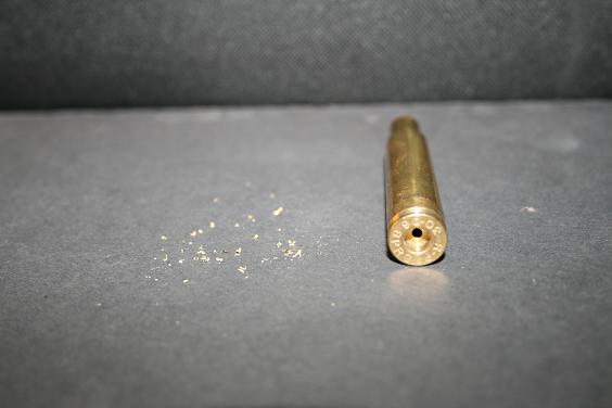 Hay un utensilio muy sencillito y nada caro que redondea y deja a su medida el agujero del oído, además de atrompetar la pared del otro lado, el que da con la pólvora. No os habéis encontrado alguna vez con un agujero pequeño? En la vaina, quiero decir. Esto, que de por sí ya es una ventaja, en realidad viene a solucionar un problema de casi todas las vainas norteamericanas. En Europa se hace la vaina ya con su agujero, pero en los USA se fabrica la vaina ciega y luego se hace el agujero, salvo casos de delicatessen (léase modelos altos de Federal, Nosler Custom y poco más). Eso hace que en muchos casos hay una rebaba dentro, precisamente donde más molesta, que es en la transmisión de la chispa a la pólvora; en casos extremos hace escudo y el resultado es que no se quema toda la pólvora con la consiguiente diferencia en velocidad, presión, etc. esa rebaba-escudo se elimina con este útil.