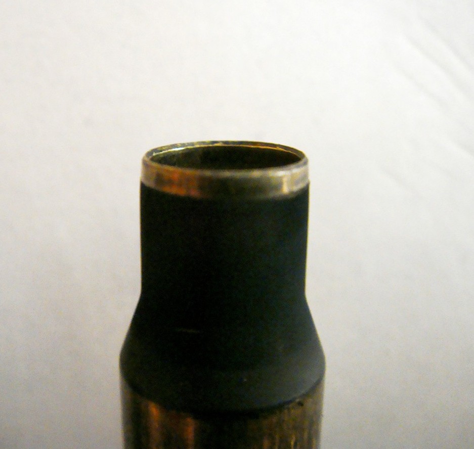 1) Claramente, queda recalibrada la boca de la vaina, justo un tramo de 1 mm. Suficiente para poder montar los proyectiles y que estos queden sujetos.