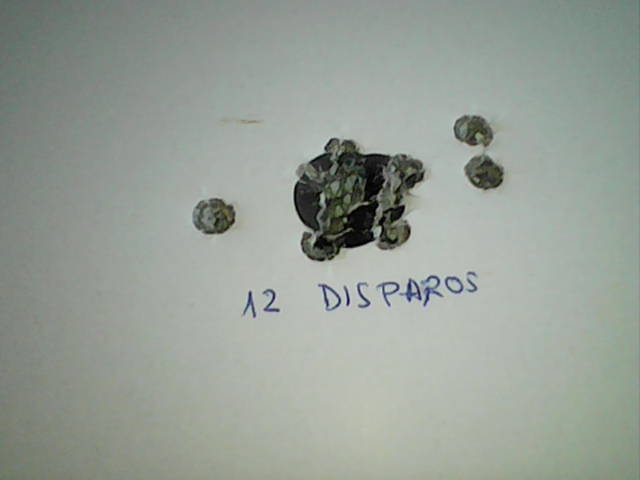 En la diana, coloque varios parches de tapar los impactos, y me entretuve en disparar solamente a uno