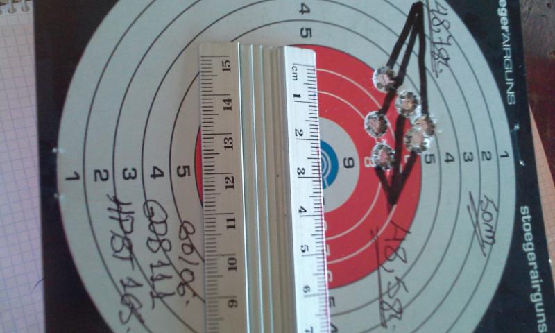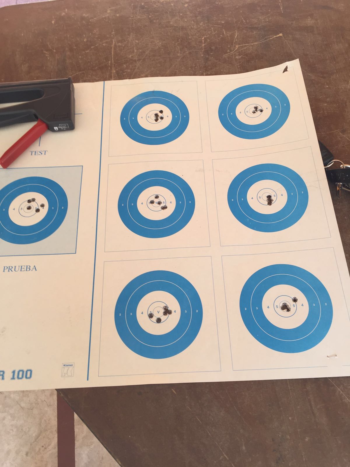 3 disparos (tiro 4 para descartar uno) han quedado separados por unos impresionantes 7mm entre centros.
