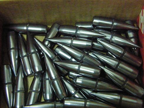 Primera hornada, puntas Nosler de 168 y SST de 165; con una cucharadita de Moly he puesto negras las ceramicas, 200 puntas terminadas, otras 250 para el 22-250 que estan apuntito y creo que aun queda Moly para rato.